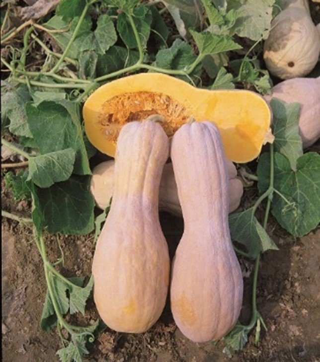 Vegetacijos periodas 110 dienų. Vaisiai melsvai pilka žieve, užauga iki 4–9 kg svorio.Minkštimas oranžinis, skanus. Vartojami švieži, troškinami, uogieniems, padažams, sriuboms gaminti bei kepiniams pagardinti. Vaisius galima išlaikyti septynis mėnesius ar net ilgiau.